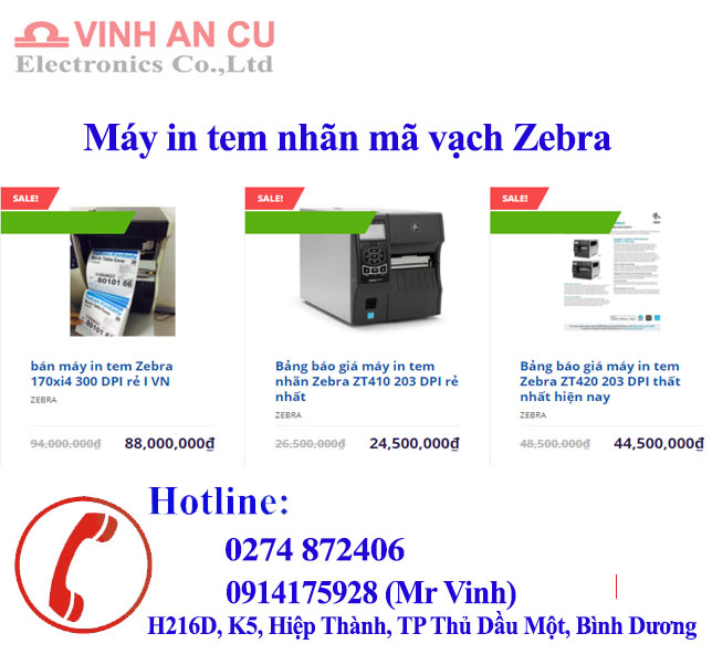 Bạn muốn mua máy in mã vạch Zebra, TSC, Toshiba, Datamax, Argox, Bixolon, Sewoo, Postek, Intermec. Hãy liên hệ ngay Nhà phân phối máy in tem nhãn mã vạch Vinh An Cư. Alo Mr.Vinh: 0914.175.928